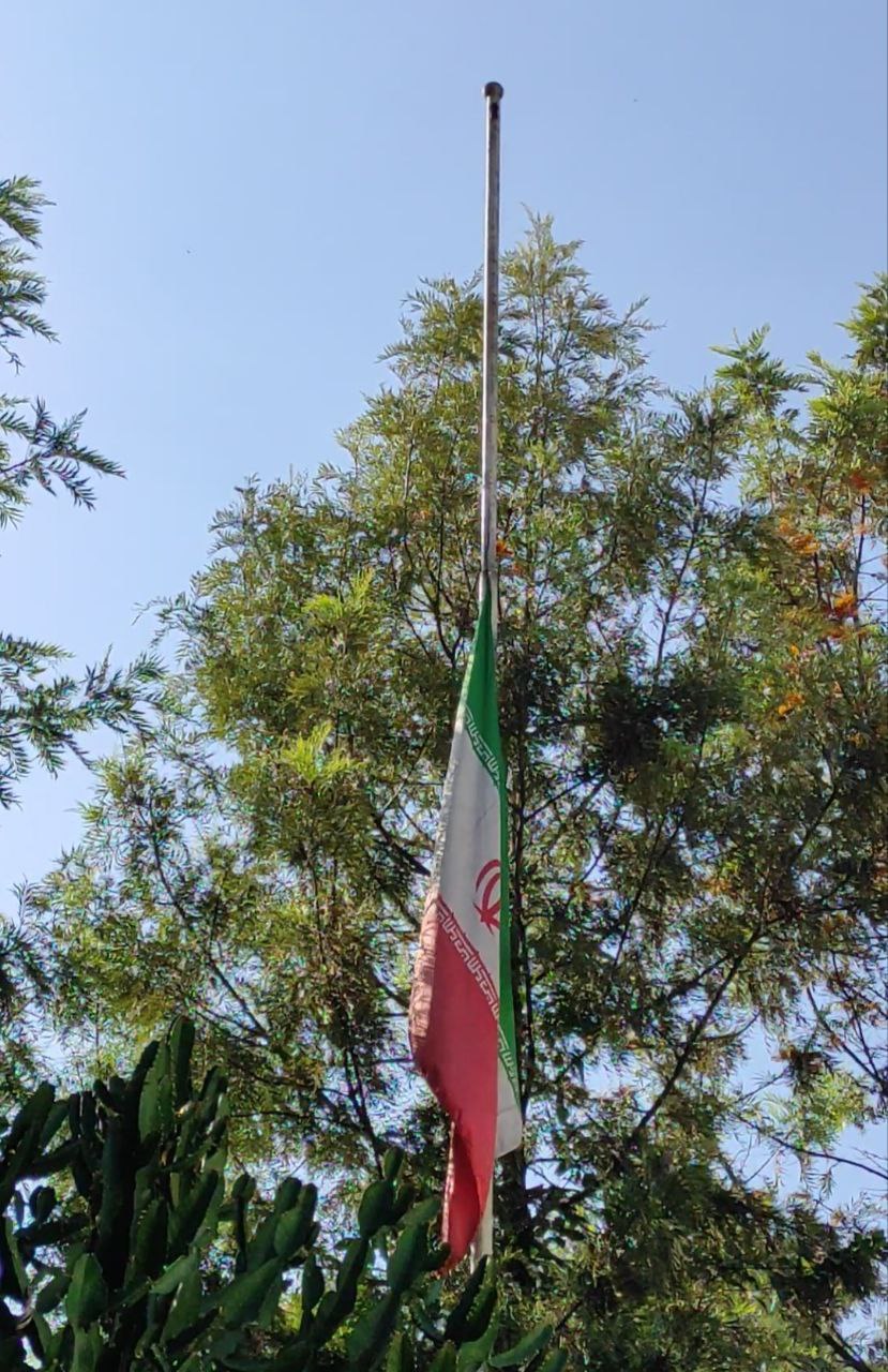 در پی حمله ددمنشانه رژیم غاصب صهیونیستی به بیمارستان المعمدانی در غزه و شهادت صدها نفر از زنان و کودکان مظلوم فلسطین و اعلام عزای عمومیتوسط دولت جمهوری اسلامی ایران، پرچم سفارت ایران در آدیس آبابا در روز چهارشنبه 26 مهرماه 1402 به حالت نیمه برافراشته درآمد.